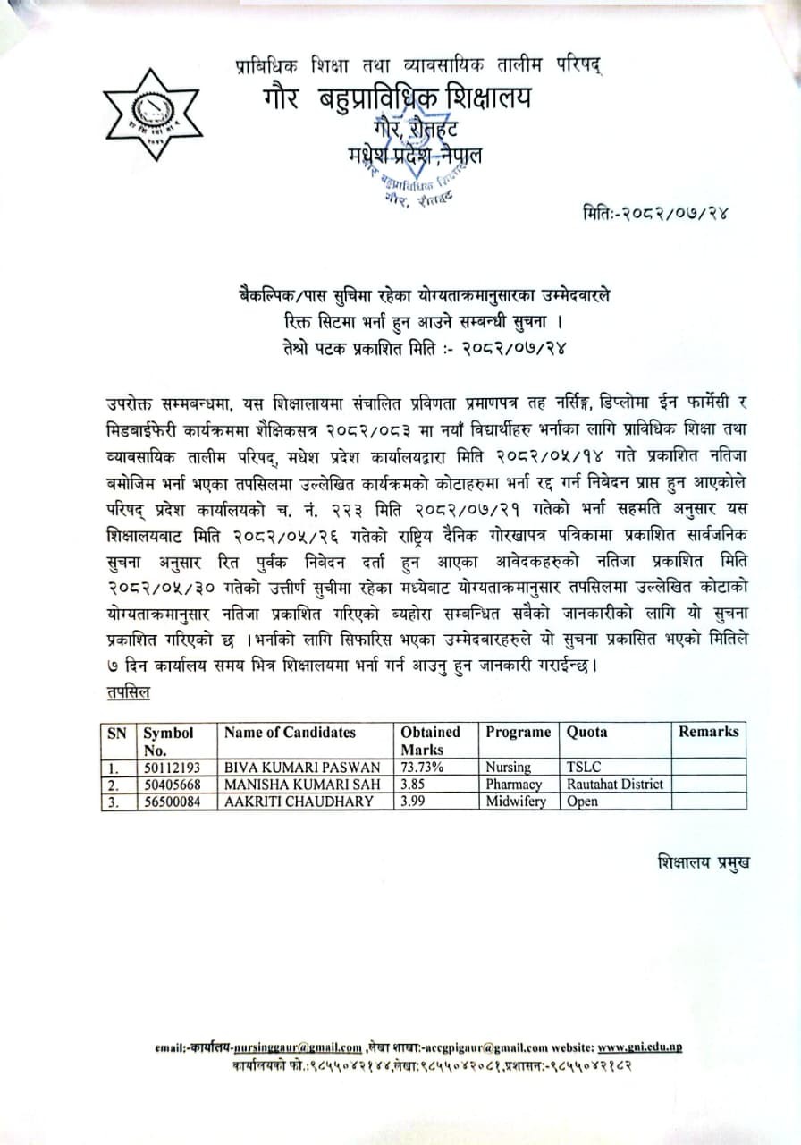 Technical Education and Vocational Training (CTEVT). Established in 2015, the institute aims to produce skilled and compassionate health professionals to meet the growing healthcare needs of Nepal. Among its major academic offerings, the Proficiency Certificate Level (PCL) Nursing Program stands out as a flagship course designed to prepare competent and caring staff nurses. The program emphasizes both theoretical knowledge and practical clinical experience, equipping students to serve effectively in hospitals, community health centers, and other healthcare settings across the country.